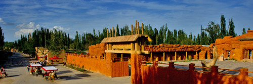 | 龟兹故地:阿克苏地区库车县市古代西域三十六国中最大的国家龟兹国所在地。在2018年春节晚会上,故宫博物院展示的稀世珍宝——创作于元代末期的《丝路山水地图》,全卷长30米,一共绘制了东起嘉峪关,西到麦加的211个城市,而这幅画卷中绘制最为精细、最为庞大的城市正是龟兹古国首都库车。 |